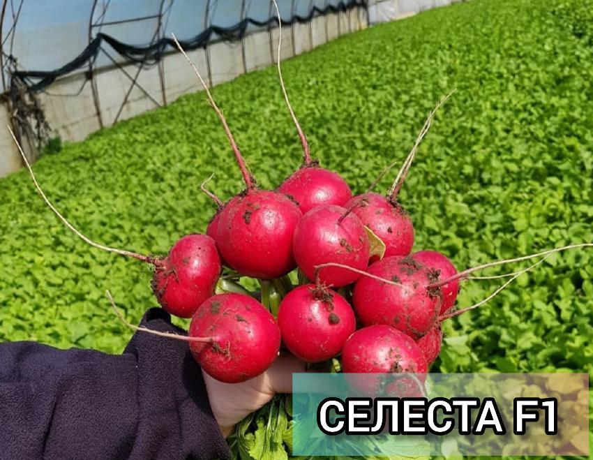 Селеста F1 — это эталон, стандарт с которым сравнивают все остальные гибриды. Очень давно производители, которые занимались выращиванием редиса, получили превосходный результат, качество, что тут же отразилось на реализации продукции. И уже много лет редис Селеста F1 продолжает оставаться тем гибридом, который выбирают фермеры, чтобы точно избежать рисков и получить высокое качество. Лидер рынка ранней продукции. И даже не смотря на новинки, Селеста F1 сочетает в себе уникальное сочетание характеристик. Стандартность корнеплодов, яркий цвет даже после мойки, тонкий хвостик.